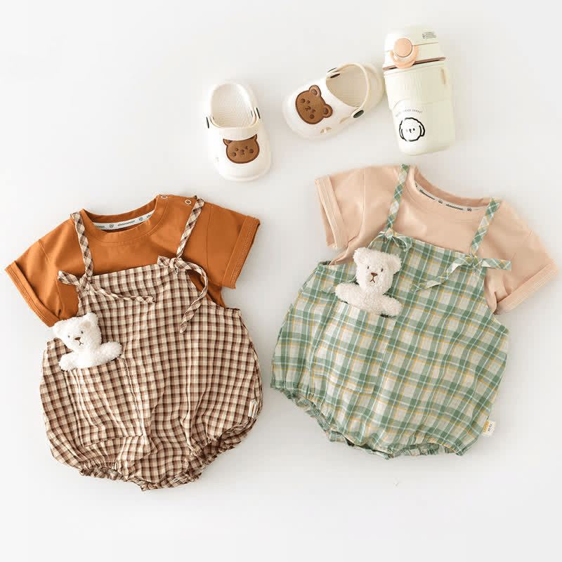 Baby Plaid Strap Overalls with Doll
