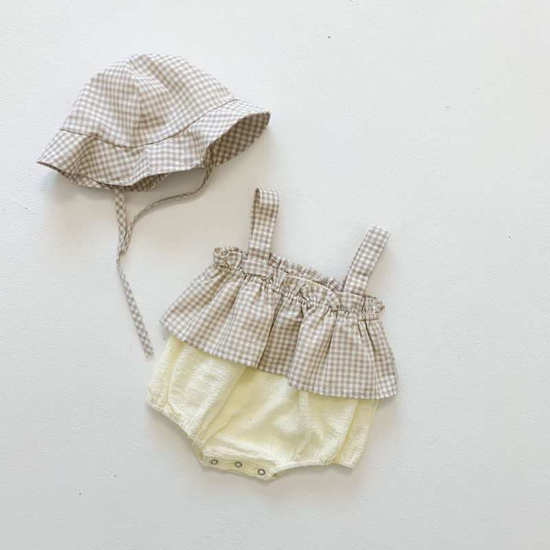 Baby Plaid Layered Strap Bodysuit with Hat