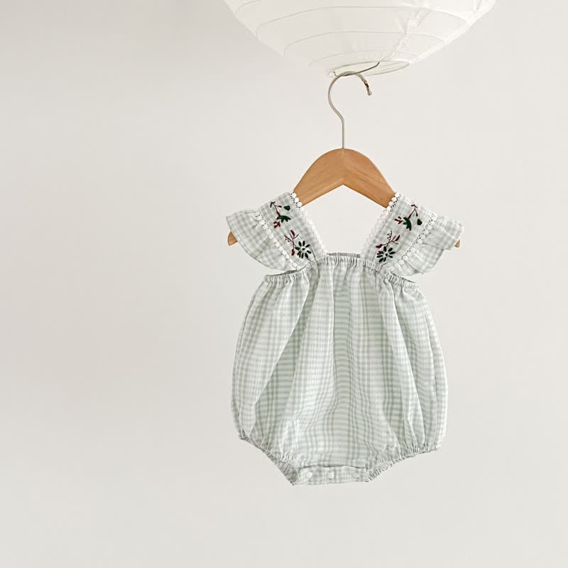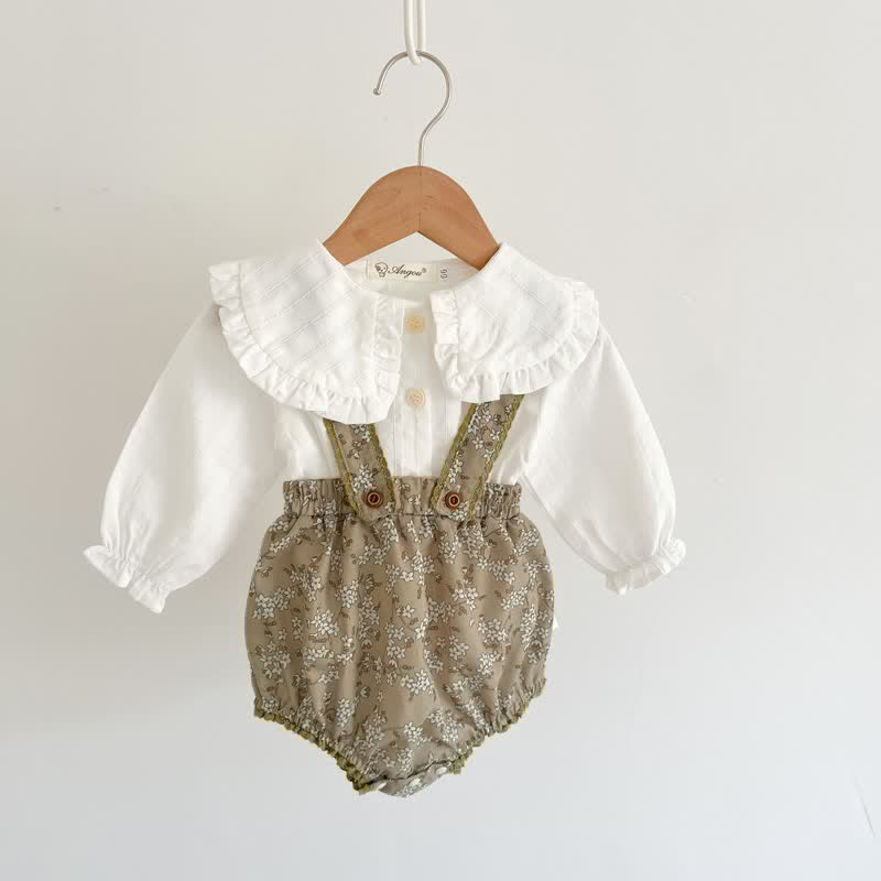 Baby Vintage Embroidered Flower Square Neck Shirt