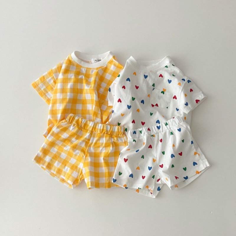 SKU: BB12867Material: 95% CottonSleeve Length: Short SleeveColor: White Heart, Yellow Plaid* Babies grow at their...