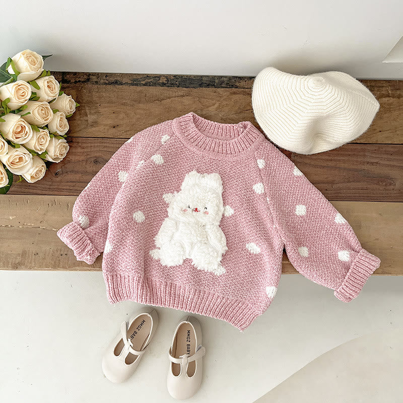 Baby Dots Bunny Knitted Fleece Pink Sweater