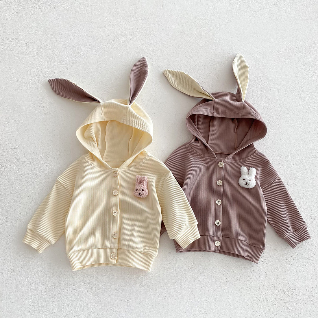 Baby Bunny 3D Ears Ribbed Lovely Hooded Coat
