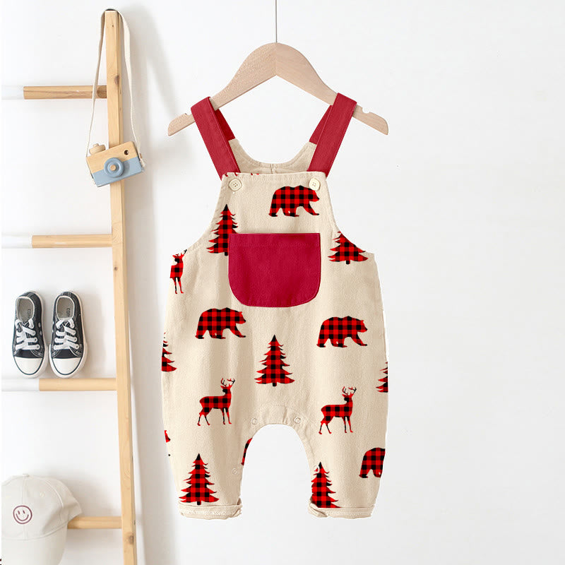 Baby Plaid Animal Tree Pocket Overalls