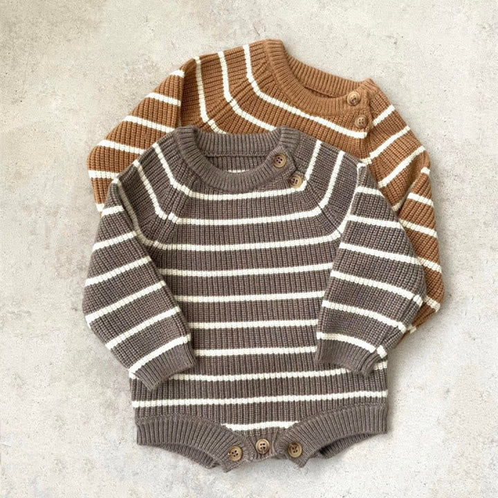 Baby Knitted Striped Simple Casual Bodysuit