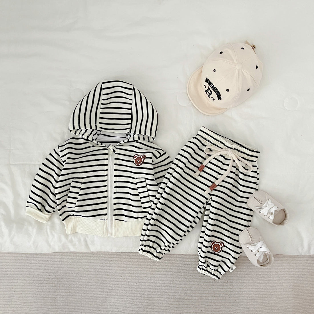 Baby Striped Bear Hooded Sweatsuit 2 Pieces Set