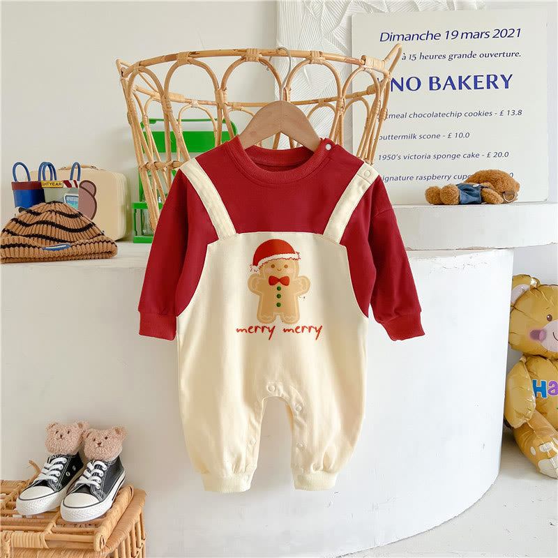 MERRY Baby Gingerbread Man Fake 2 Pieces Romper