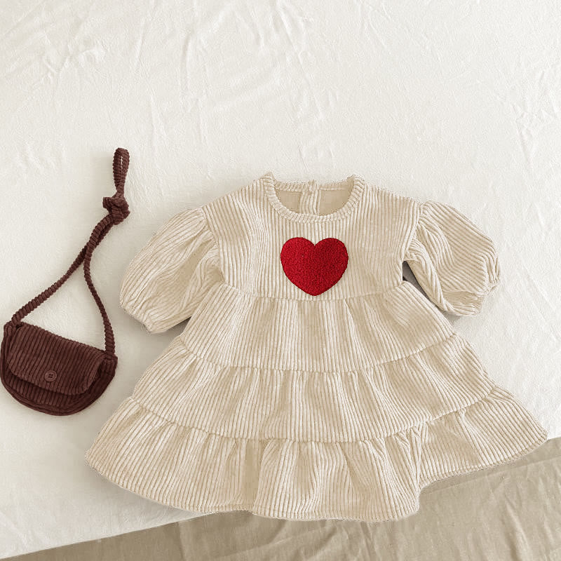 Baby Toddler Girl Towel Embroidery Heart Corduroy Dress