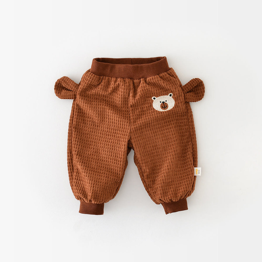 Baby Embroidered Cartoon Bear Fleece Jogger Pants