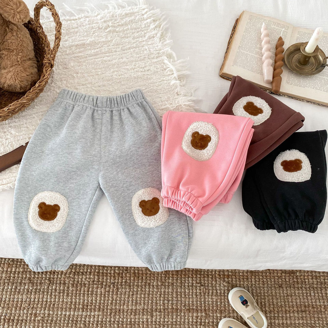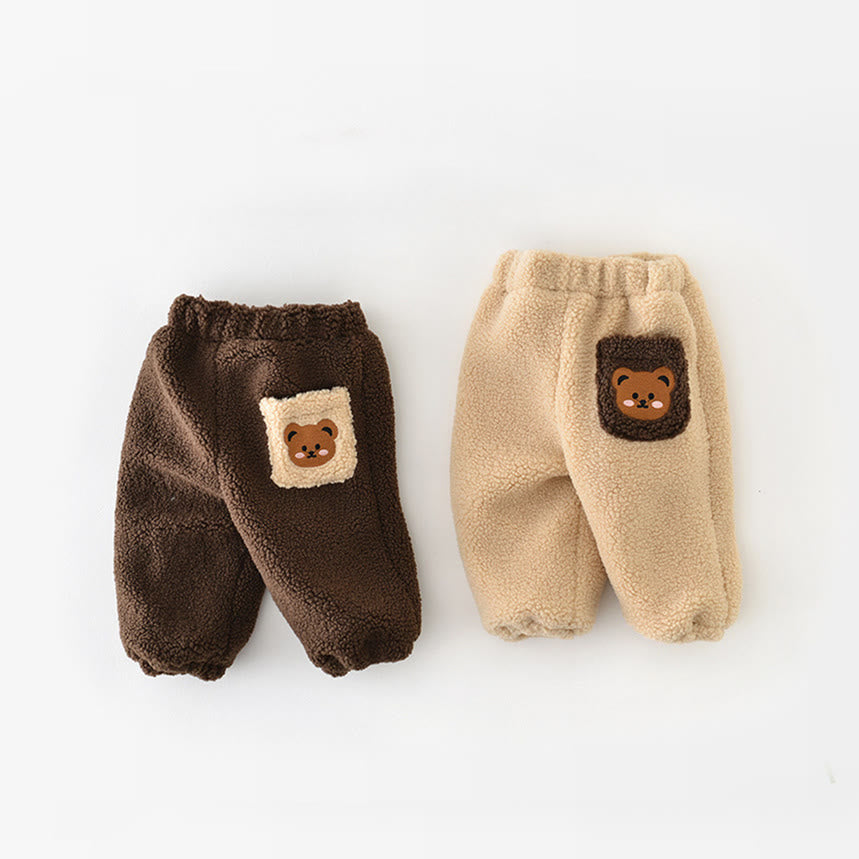 Baby Cartoon Pocket Bear Casual Fleece Jogger Pants