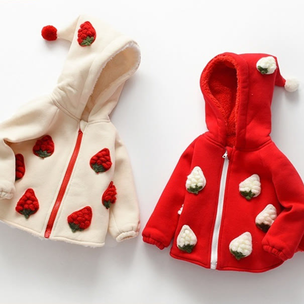 Baby Girl Strawberry Fleece Lined Hooded Warm Coat