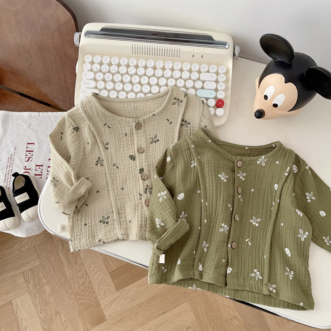 Baby Toddler Girl Linen Flower Button Sweatshirt