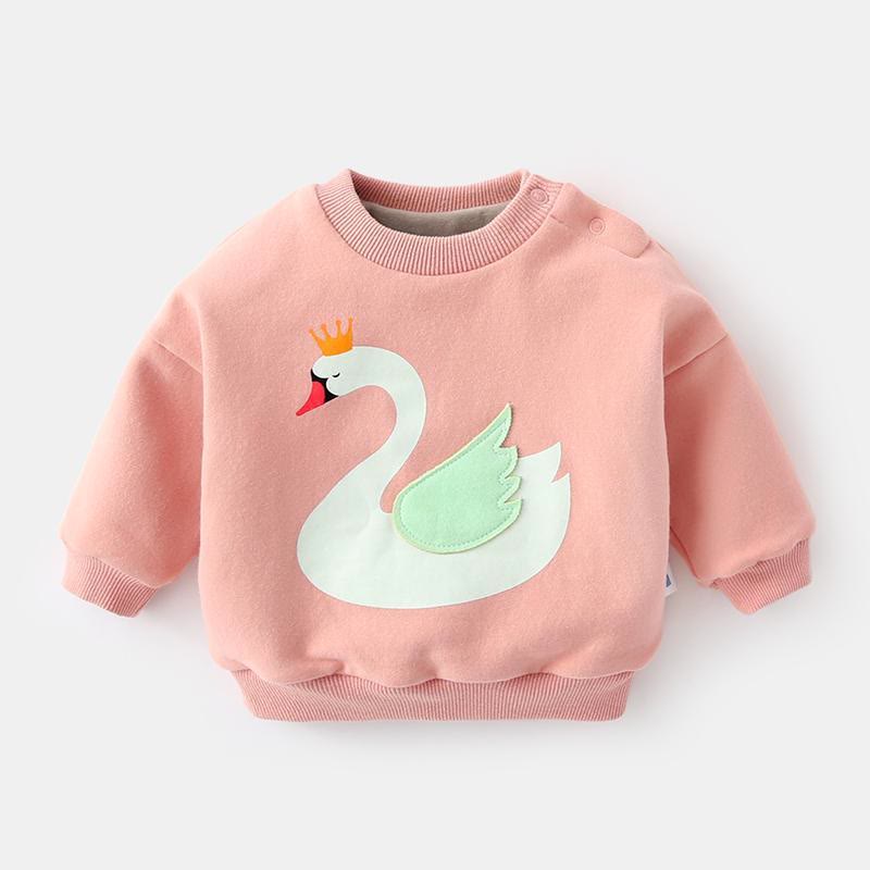 Baby Cartoon Crown Swan Fleece Lined Sweatshirt