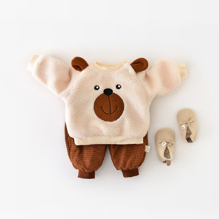 Baby 3D Bear Fleece Lined Warm 2 Pieces Set