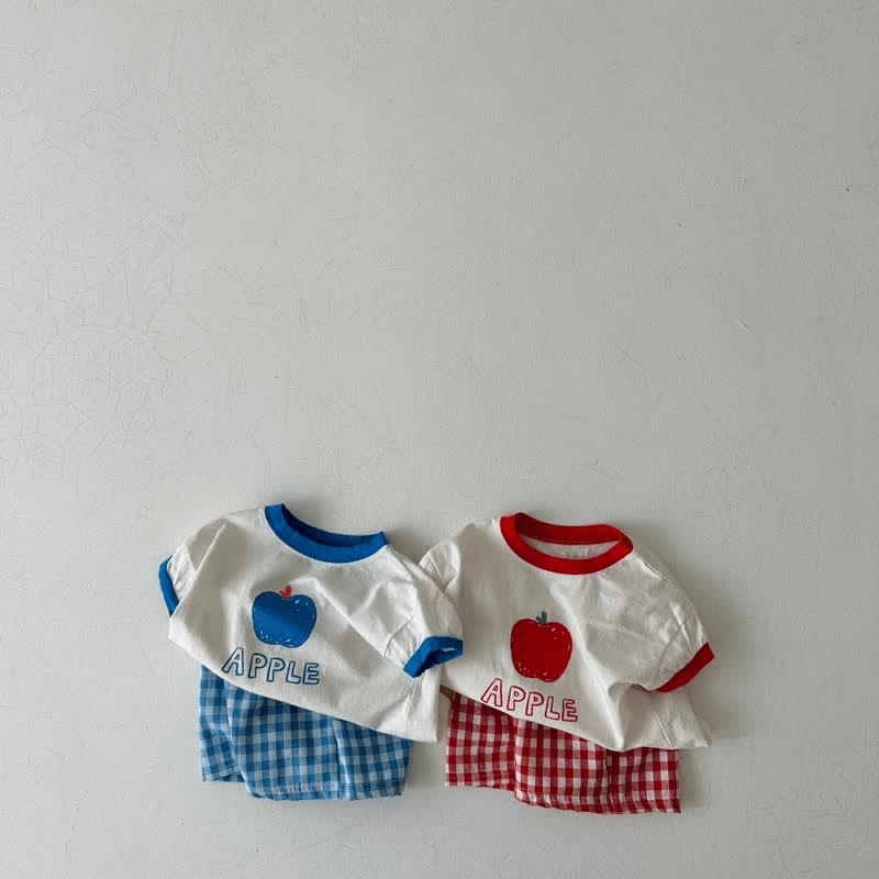 APPLE Baby Toddler Tee and Plaid Shorts Set