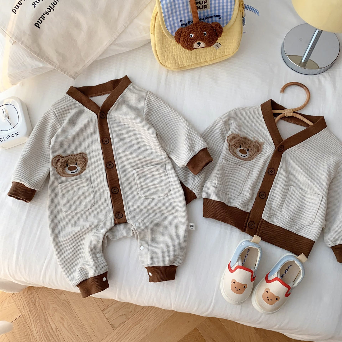 Baby Bear Button Waffle Pocket Romper Cardigan