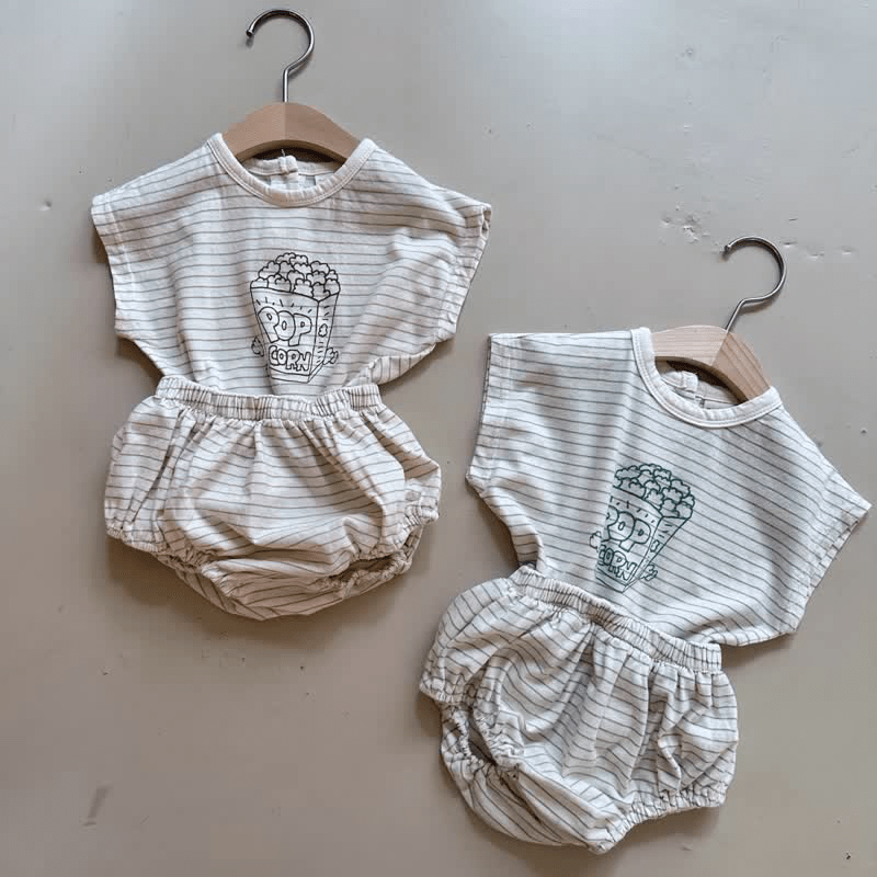 POPCORN Baby Toddler Striped Tee and Shorts Set