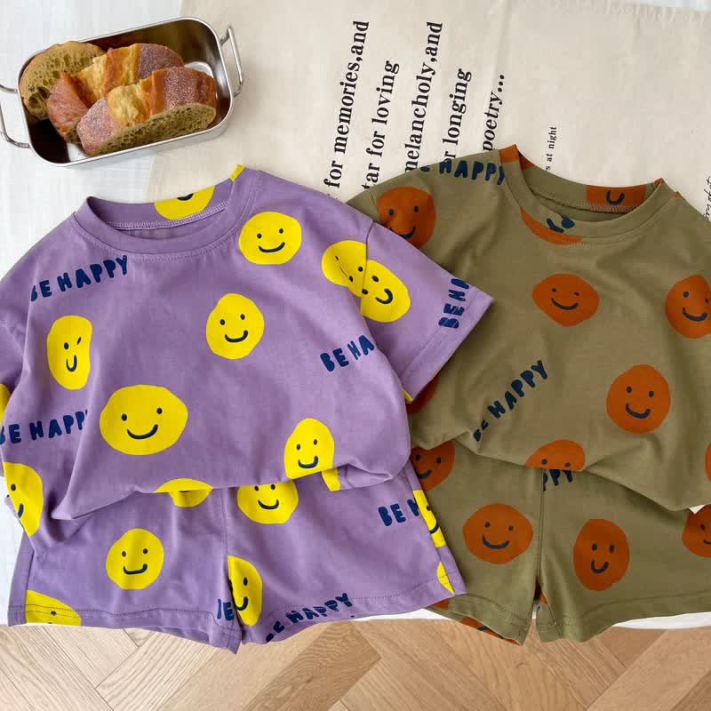 BE HAPPY Baby Toddler Smiley Tee and Shorts Set