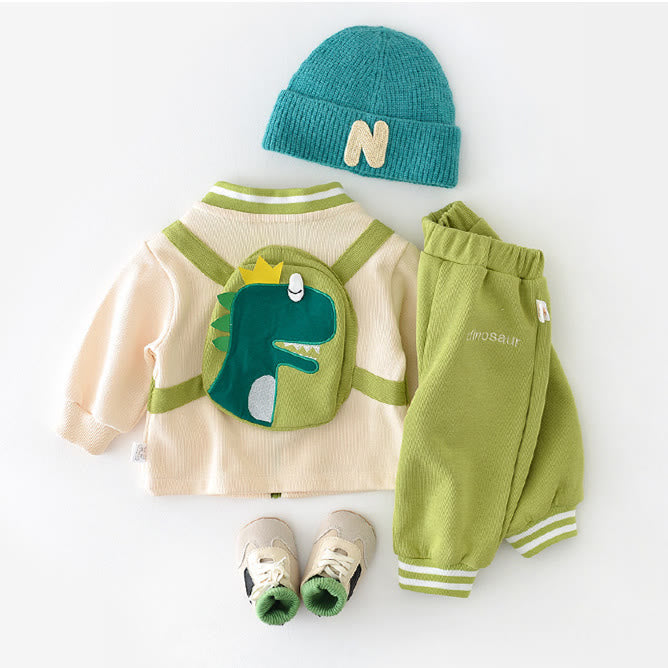 DINOSAUR Baby Casual Slogan Zipper Green Coat Pants
