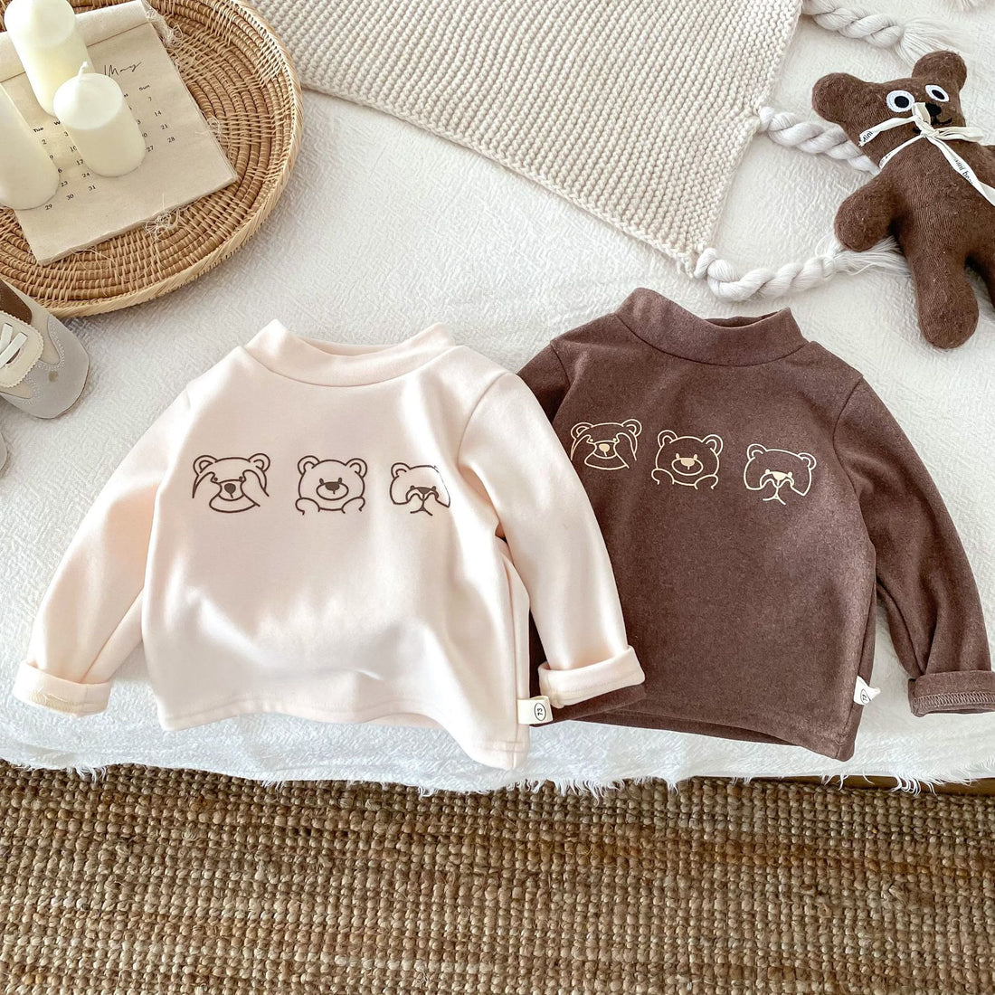 Baby Toddler High Collar Three Bear Warm T-shirt