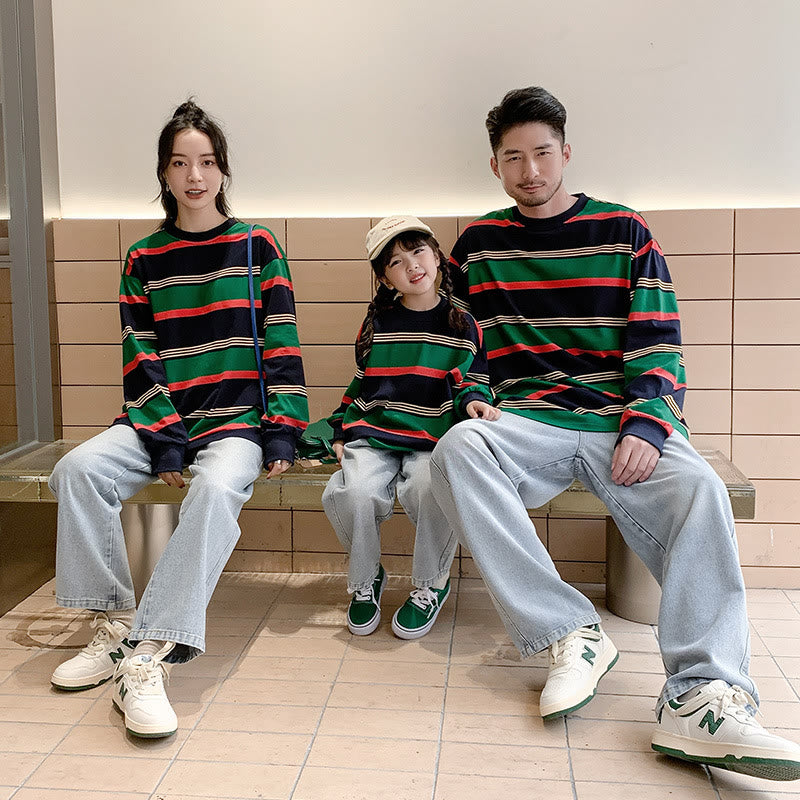 HI Family Matching Striped Fake 2 Pieces Sweatshirt