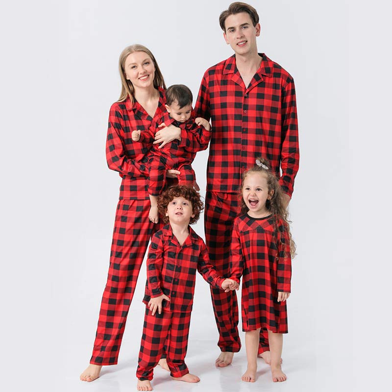 Family Matching Plaid Pajamas Set with Pet Dog Clothes