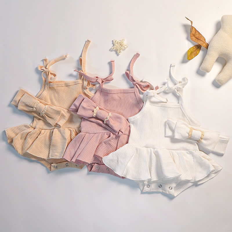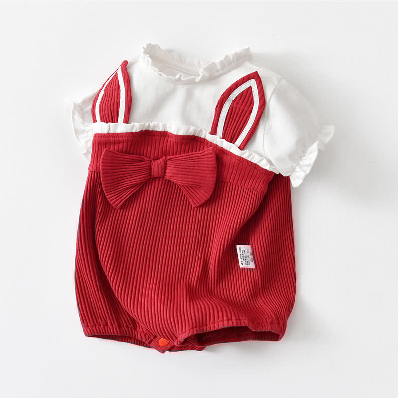 Baby Bunny Bowknot Ribbed Newborn Romper