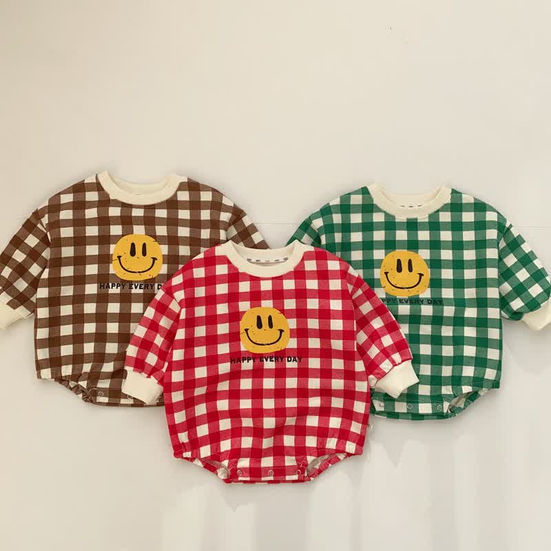 HAPPY EVERY DAY Baby Smiley Plaid Bodysuit