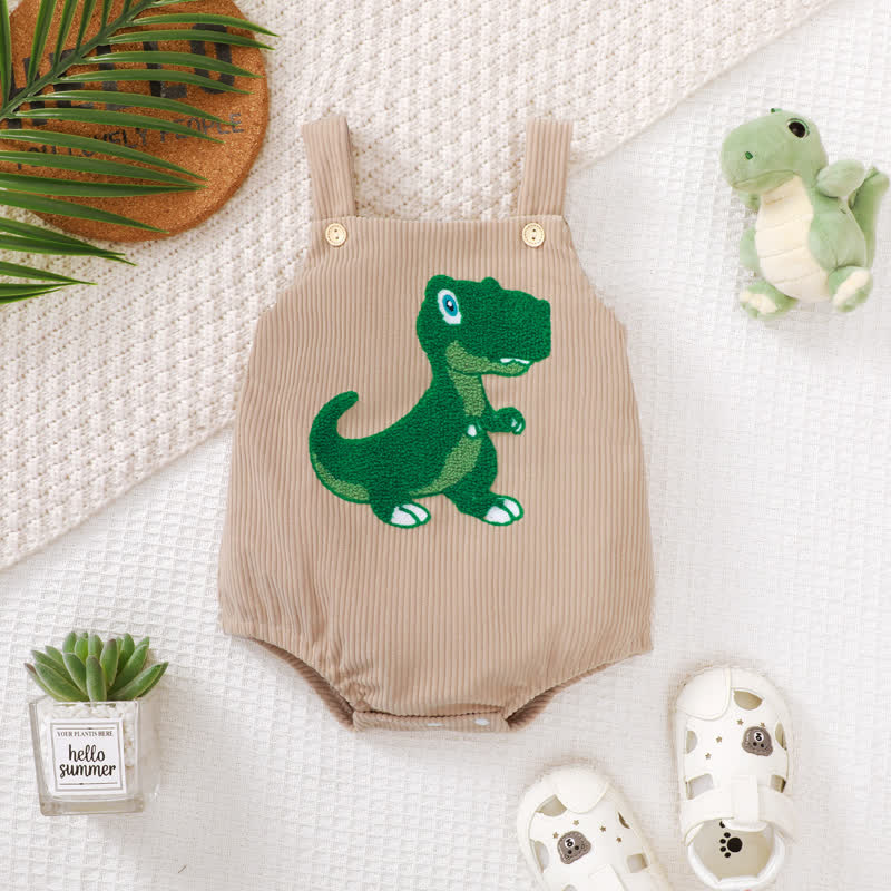 Baby Embroidered Dinosaur Corduroy Khaki Overalls
