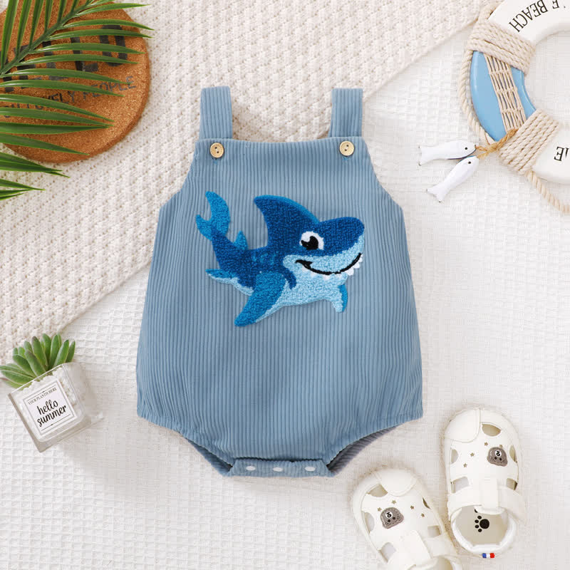 Baby Embroidered Dinosaur Corduroy White Overalls