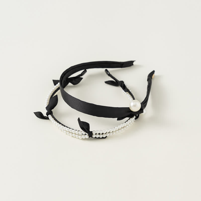 Baby Faux Pearl Black Bows Headband