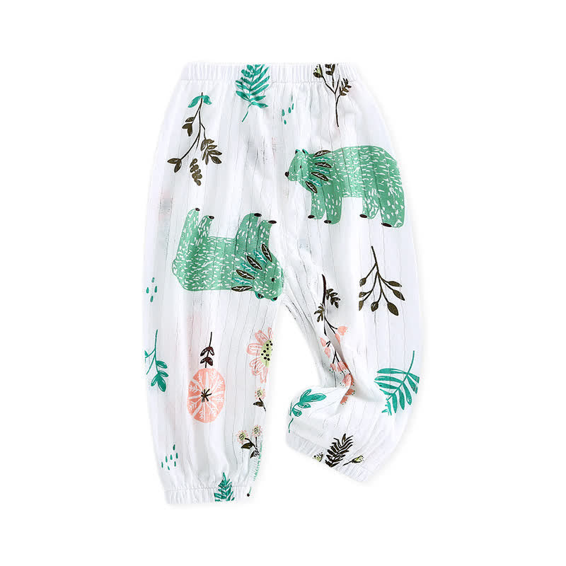 Toddler Cartoon Flower Bear White Pants