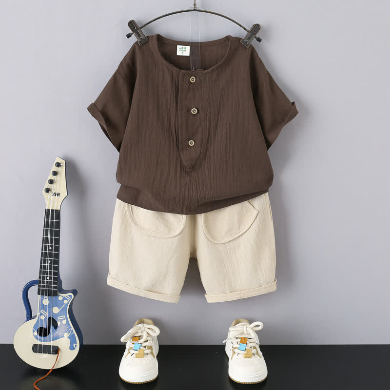 Product ID: BB51242Material: 80% CottonColor: Green, Khaki Size Chart Size (Age) Height (CM) Chest (CM) Hipline...
