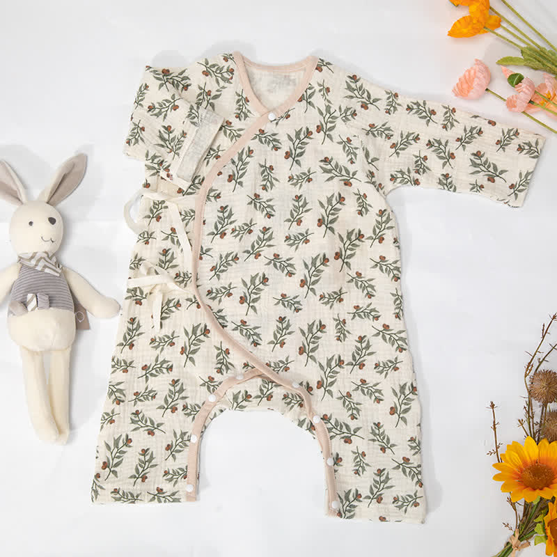 Baby Leaves Kimono Beige Pajamas Romper