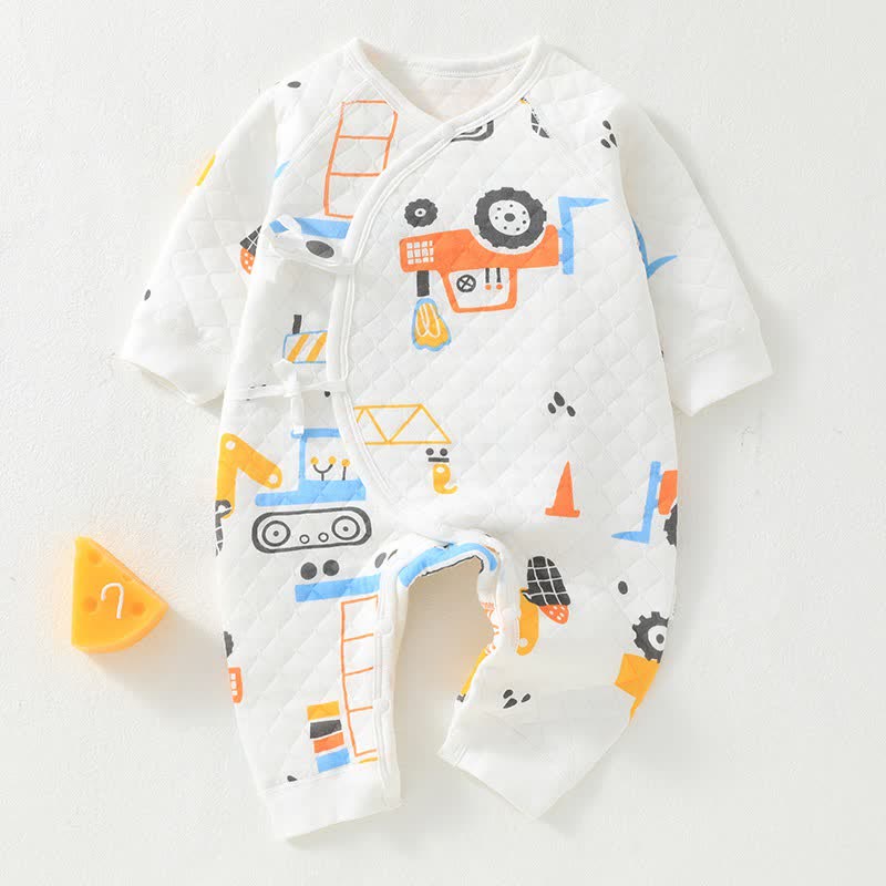 Baby Engineering Vehicle White Kimono Romper