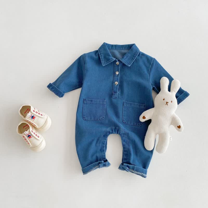 Baby Denim Polo Pocket Blue Romper