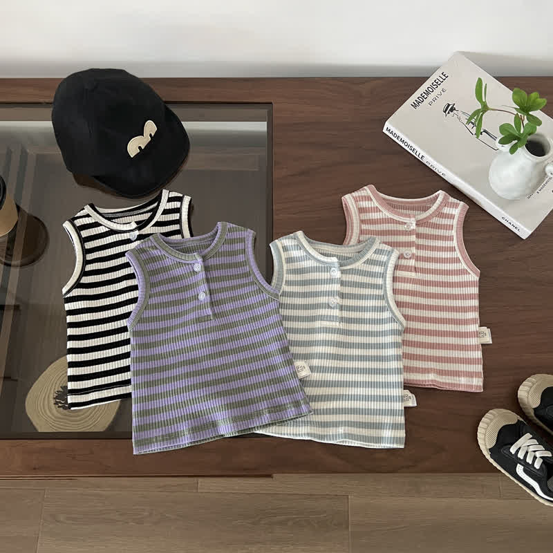 Baby Striped Basic Button Tank Top