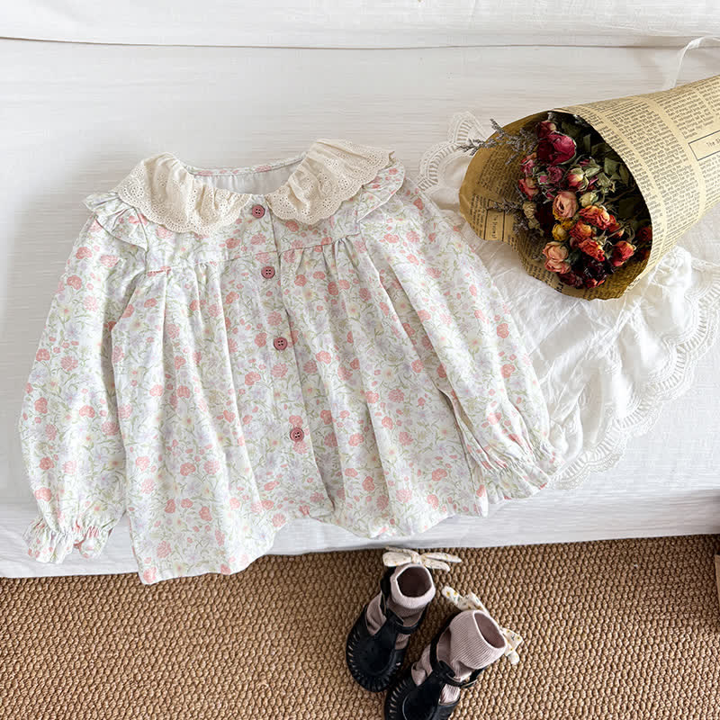 Toddler Girl Pastoral Pink Flower Blouse