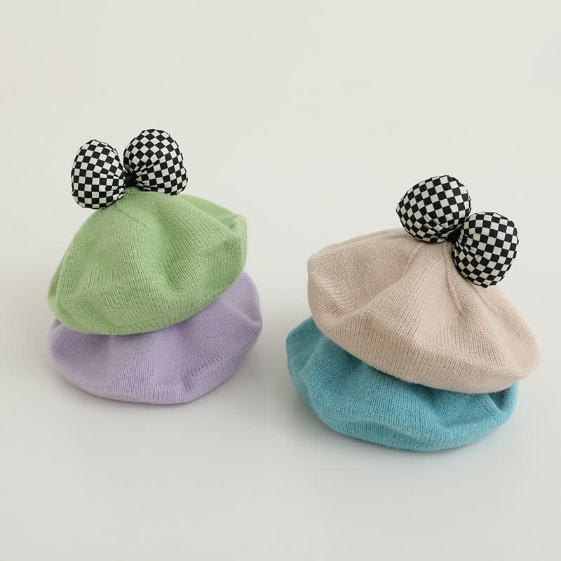 Baby Plaid Bow Knitted Beret