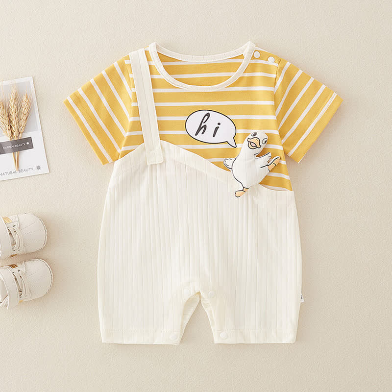 Product ID: BB48501Material: 95% CottonColor: Yellow Size Chart Size (Age) Height (CM) Chest (CM) Length (CM) 3-6M...