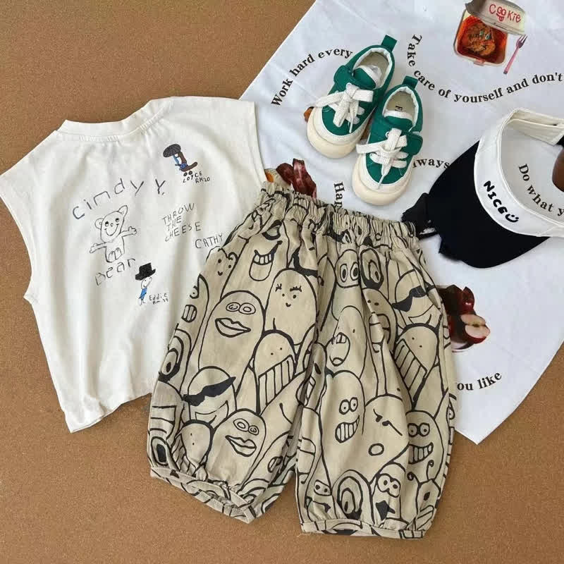 Product ID: BB49096Material: 61.8% CottonColor: Beige, Green Size Chart Size (Age) Height (CM) Chest (CM) Shorts...