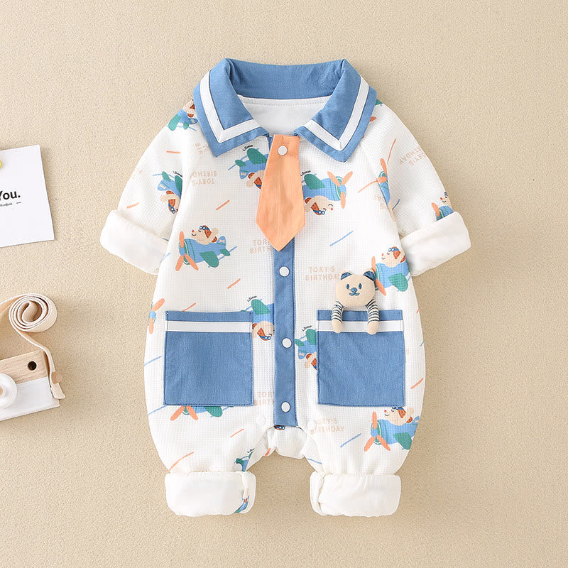 Baby Embroidered Bear Lapel Ribbed Bodysuit