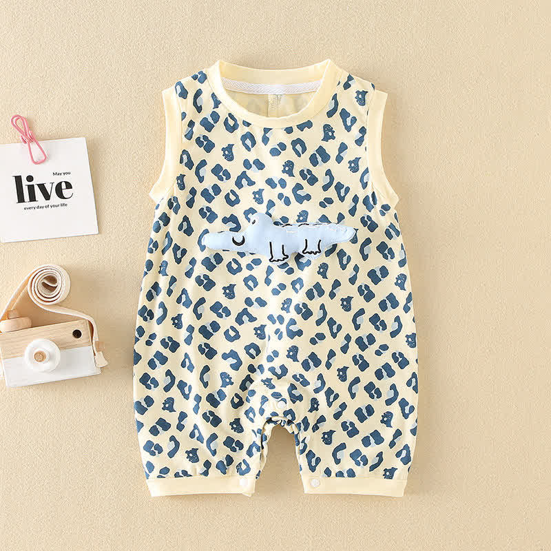 Baby Collar Striped Crocodile Fake 2 Pieces Romper
