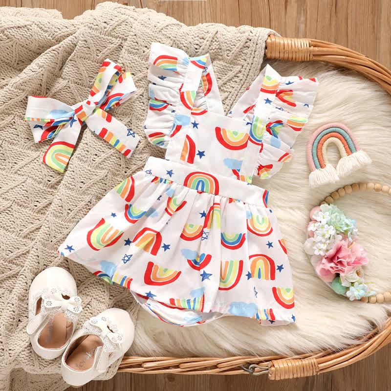 Baby Rainbow Star Ruffle Bodysuit with Headband