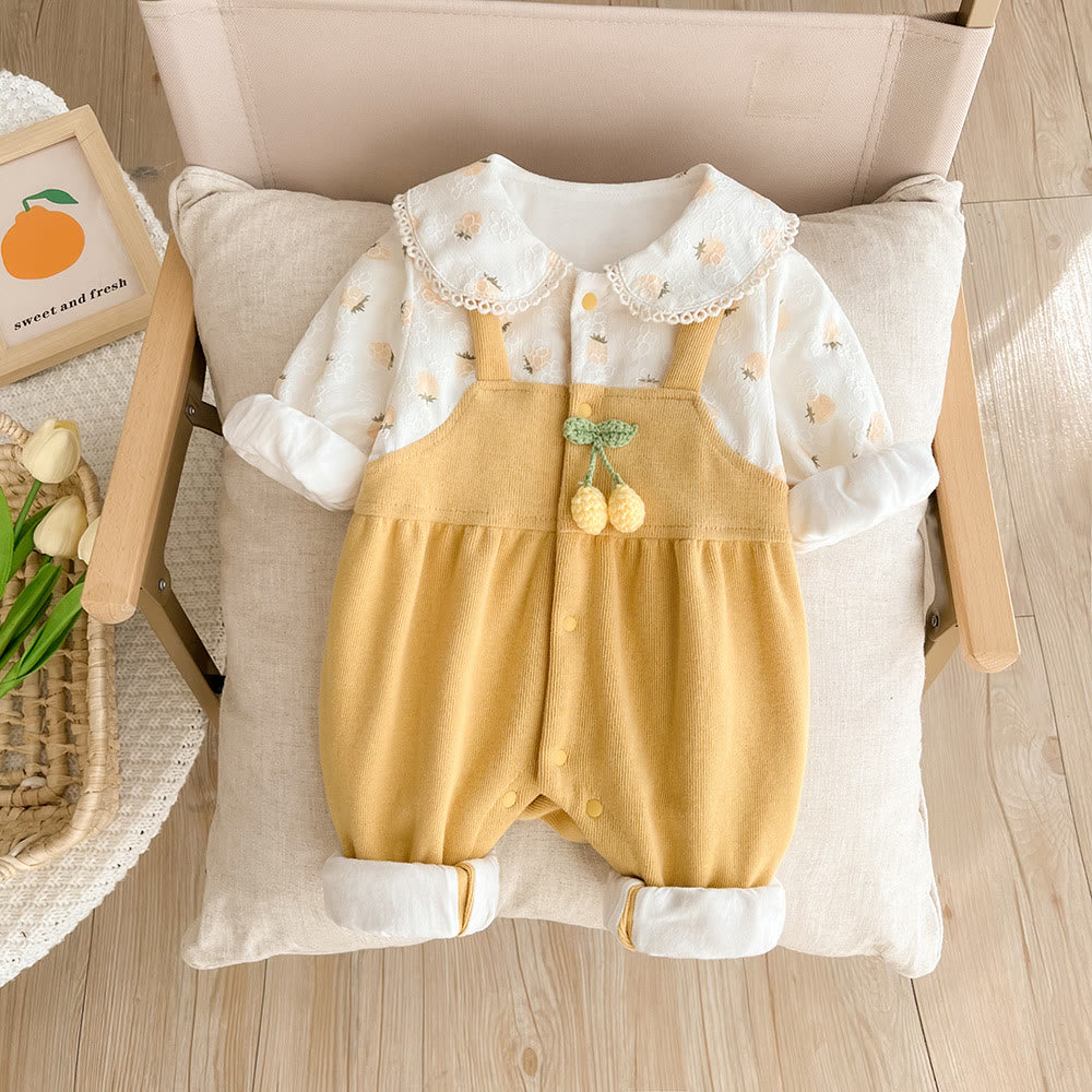 Baby Collar Strawberry Cherry Fake 2 Pieces Romper