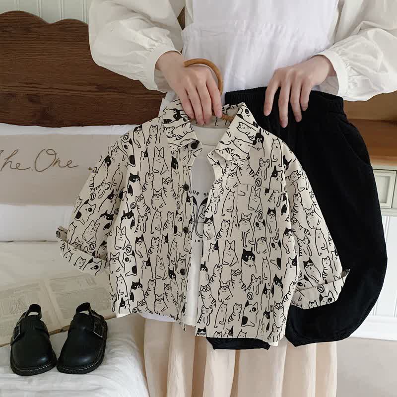 Kid Boy Cute Cats Graffiti Shirt Jacket