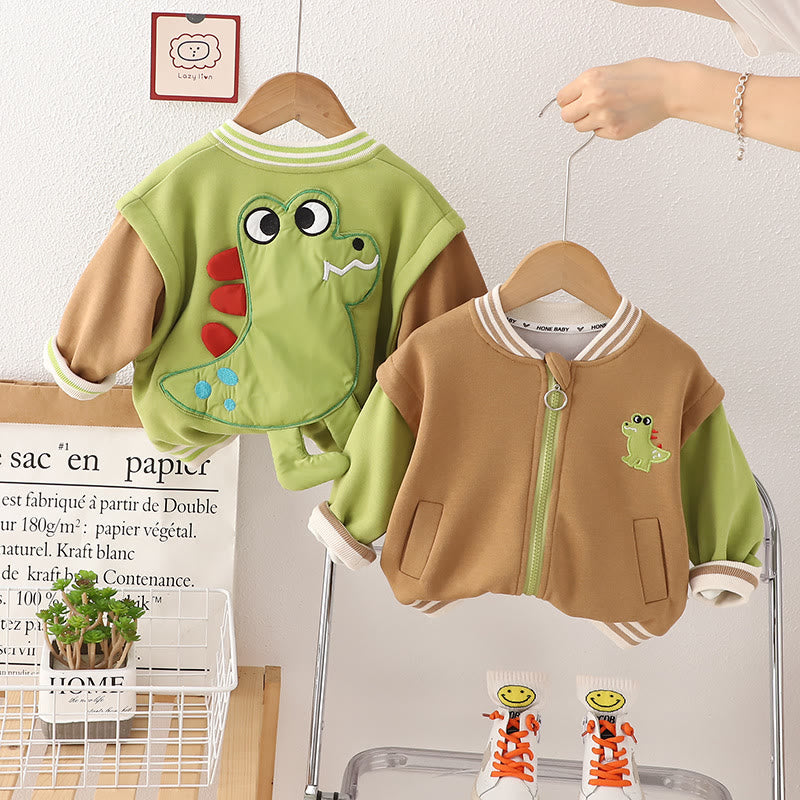 Toddler Boy Contrast Sleeves Cartoon Crocodile Cute Coat