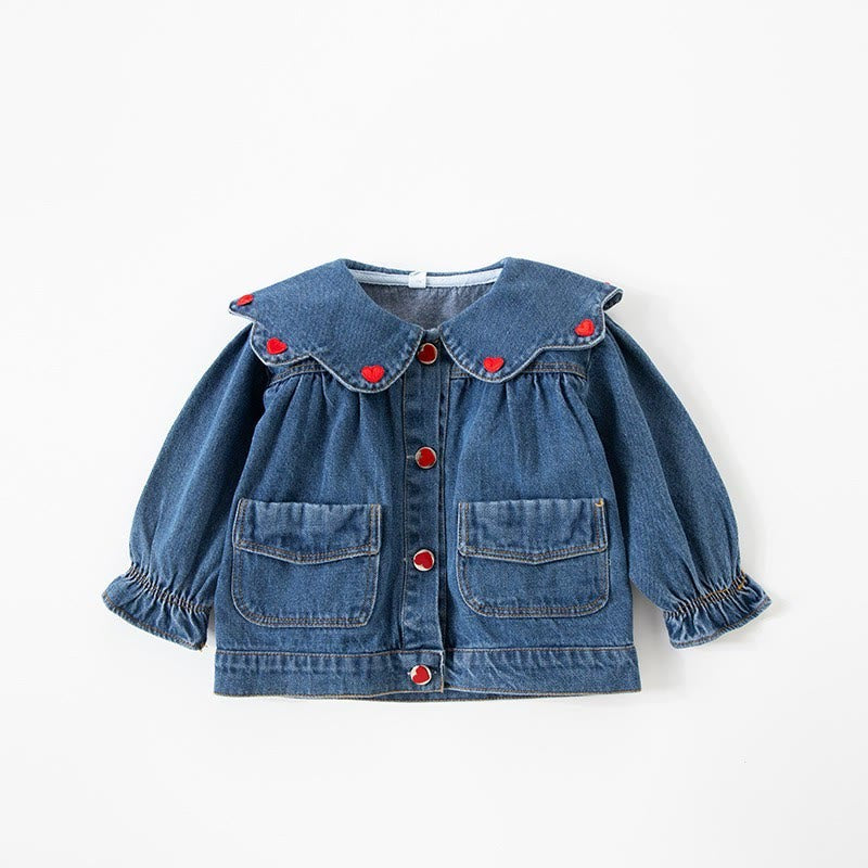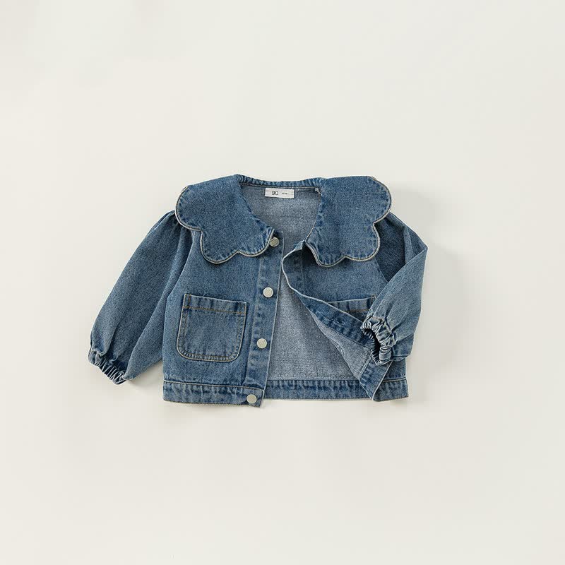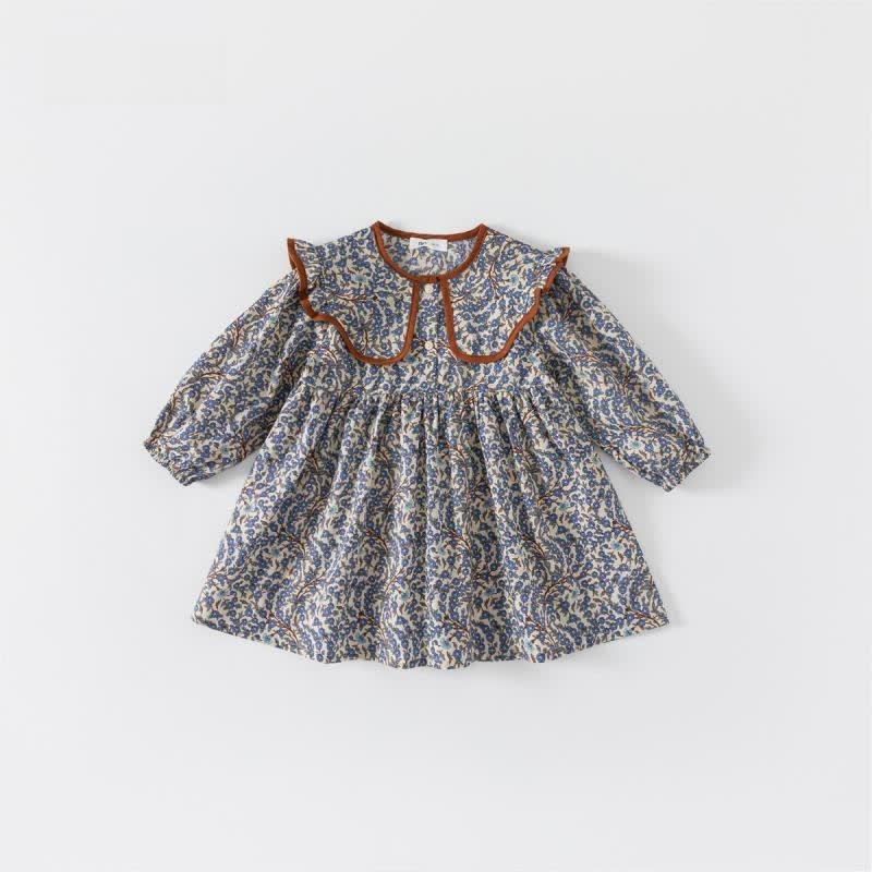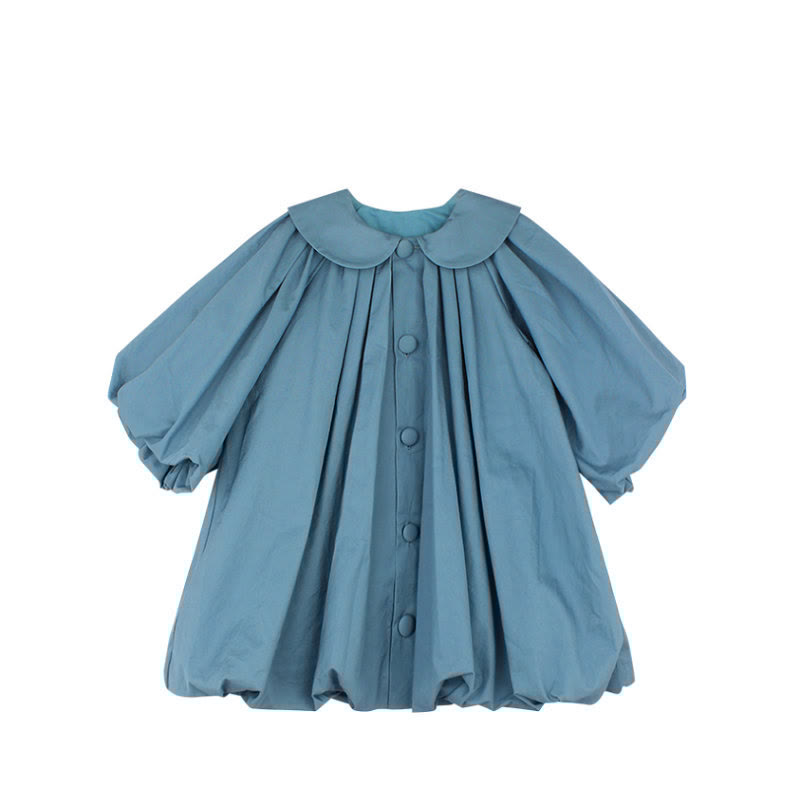 Toddler Girl Blue Puff Sleeves Collar Button Dress