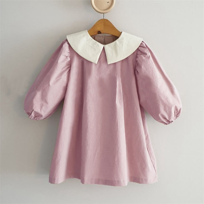 Toddler Girl Simple Collar Puff Sleeves Dress