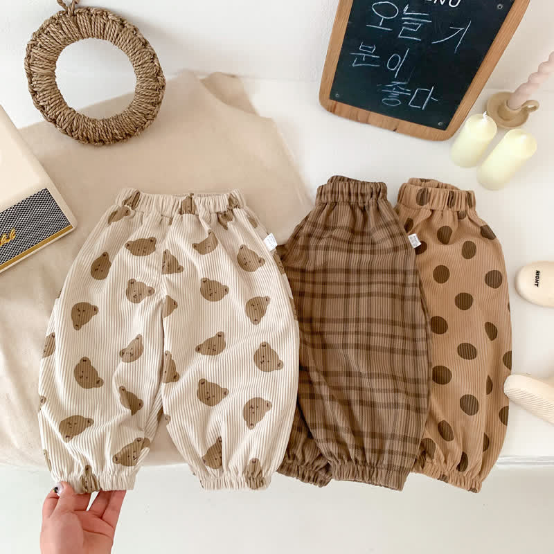 Toddler Bear Plaid Dots Jogger Pants