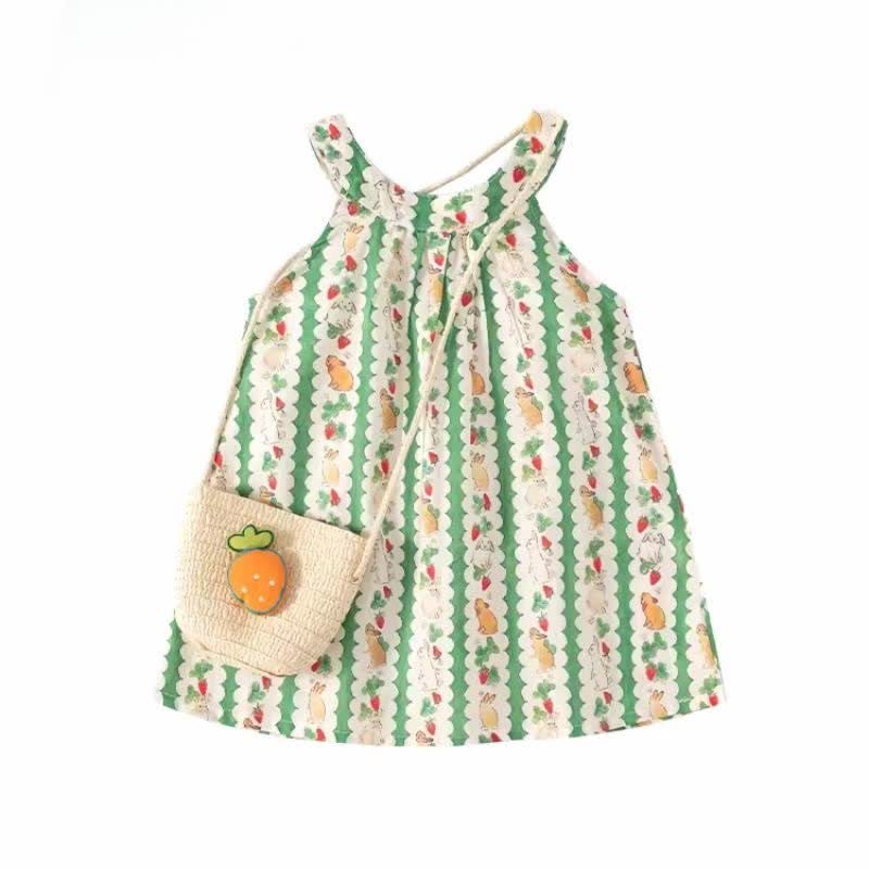 Toddler Girl Bunny Strawberry Halter Neck Dress